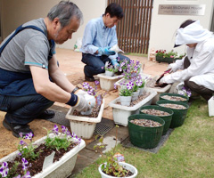 秋のボランティアは9月~10月の間に、春に咲くビオラ、パンジー(種、又は、2.3㎝の幼苗)の種まきなどを行います。