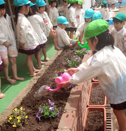 春に満開になるビオラやパンジーなどのお花は、卒業式(卒園式)や入学式(入園式)の際に、お花のある環境「育ちの場」を実感し、活動現場や子どもたち、また保護者の皆様に大変感謝をされています。